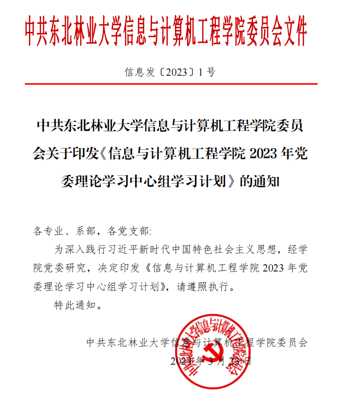 中共sunbet官方网站信息与计算机工程公司委员会关于印发《信息与计算机工程公司2023年党委理论学习中心组学习计划》的通知