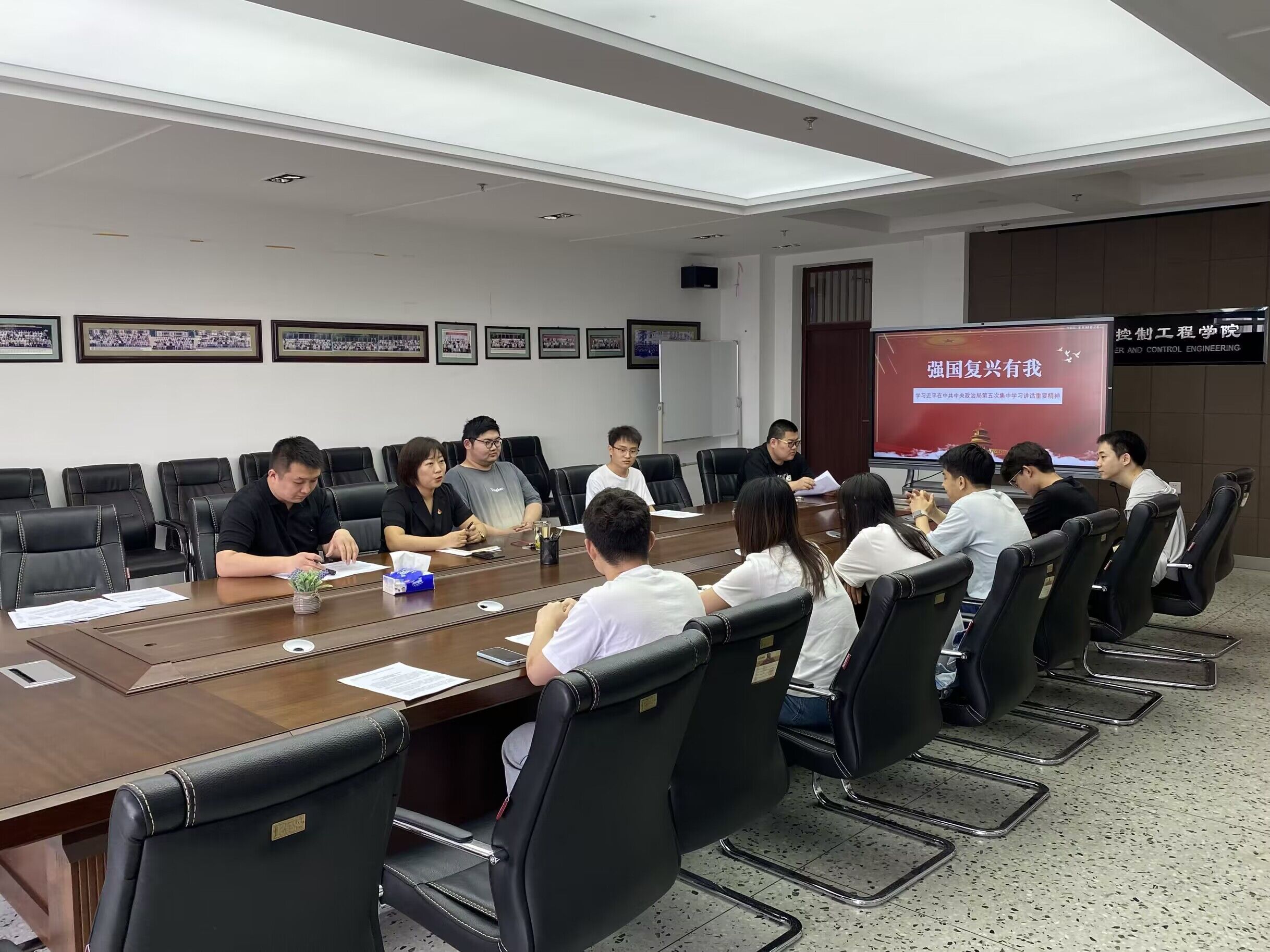 为深入推进学习贯彻习近平新时代中国特色社会主义思想主题教育走深走实,6月9日上午,计算机与控制工程公司党委书记钟蕾以研究生班导师的身份在成栋楼1014参加了2021级研究生计算机科学与技术专业的主题班会,为员工们带来了一堂主题为“强国复兴有我”的党课,并深入调研员工们近期遇到的困惑。研究生辅导员吕帅和计算机科学与技术专业的研究生参加了本次主题班会。