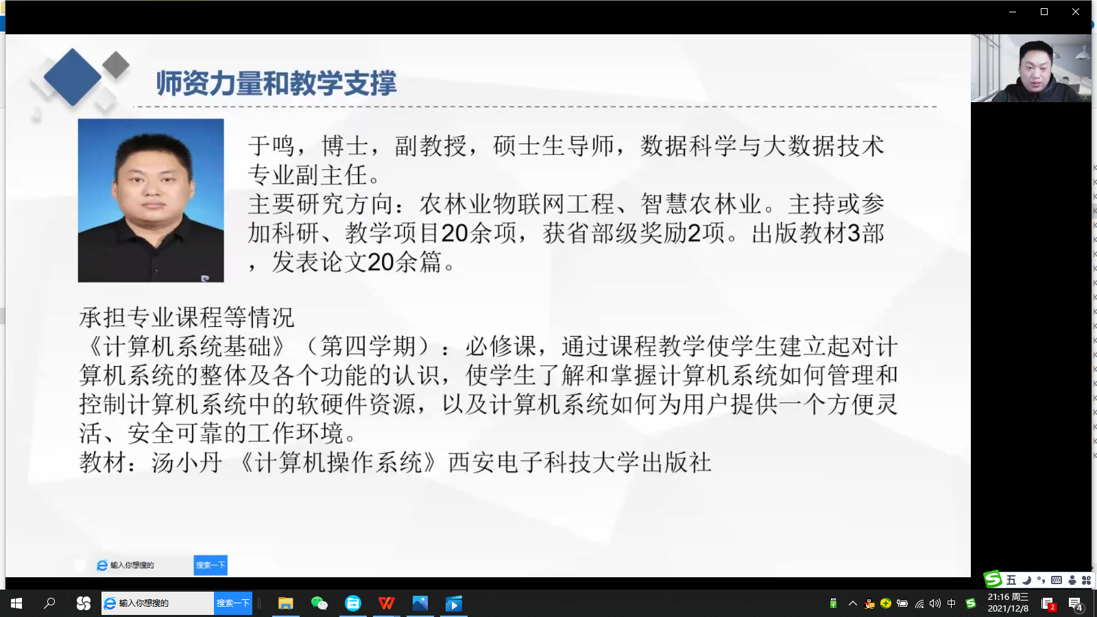 2021年12月8日,面向2020级数据科学与大数据技术专业员工的师生见面会在云端举行,见面会由数据科学与大数据技术专业主任纪明宇老师主持,会议共有6名专业老师和专业全体39名同学线上参加,老师们从专业基本情况、行业发展、职业规划、班导师政策、课程内容等方面为员工们进行了细致的讲解。