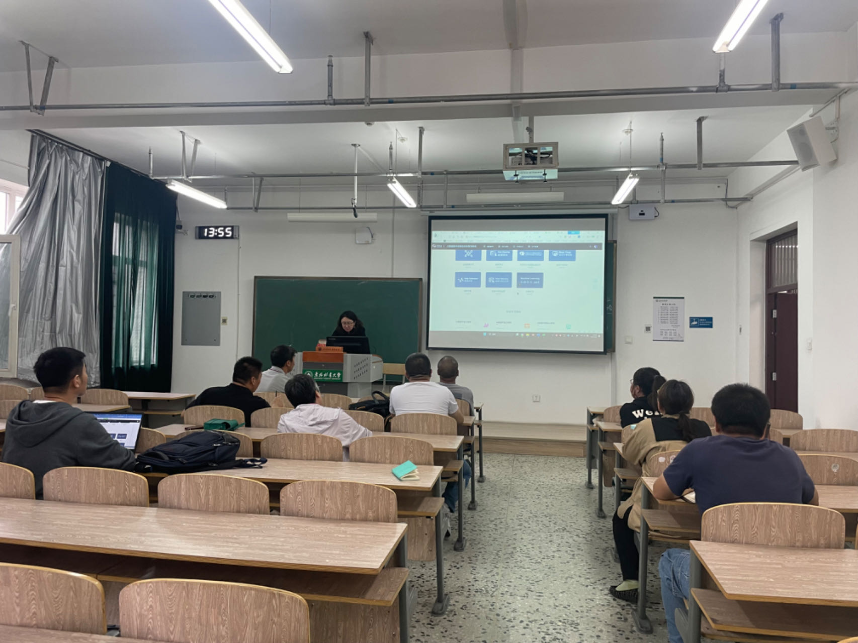 首先,由李实、刘鹏进行基于实验平台搭建专业课实验内容的经验分享。李实结合《数据科学导论》课程针对如何建课、如何从平台中搜索现有资源、如何添加自己设计的实验内容等问题进行详细介绍。刘鹏结合《分布式与云计算》课程对如何在平台上利用镜像搭建实验环境进行了细节阐述。专业教师根据各自的授课内容对平台的使用提出了可能遇到的问题,深入思考如何面向专业员工建立从大一到大三的贯通式实验训练体系和能力培养机制。